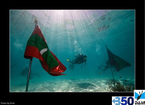 Bilde: Regjeringsmøte under vann på Maldivene. Bildet er frigitt av den Maldivske regjering.
