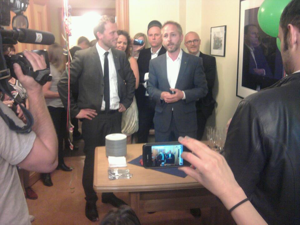 I løpet av helga starta miljøorganisasjonene et opprop for å kreve at politikerne skulle kunne sette seg sammen og få til en enighet. De fikk blant annet bred støtte fra kirkens folk. Fra SVs side ønska vi nye forhandlinger. Politisk bevegelse i opposisjonspartiene ga grunnlag for fornya optimisme. De parlamentariske lederne kom på banen. SV, AP, SP inviterte KrF, H og V til forhandlinger. De stilte opp, og dermed var vi i gang igjen på tirsdag. Fra da av har det gått rimelig i ett, med usikkerhet om hvorvidt det var mulig å oppnå enighet. I natt var det imidlertid rimelig klart at dette burde gå bra. Etter diverse møter i dag, var enigheten oppnådd ved halv-tre tida i dag. Etter at pressa ble orientert i Stortingets vandrehall, inviterte SV miljøbevegelsen til felles feiring med champagne og bløtkake på Audun Lysbakkens kontor. Stemninga var stor. Klimaforliket er SVs barnehageforlik. I årene framover vil vi ha en klimapolitikk som SV har satt et sterkt preg på. Det er morsomt å ha vært med på å skape slik politikk.