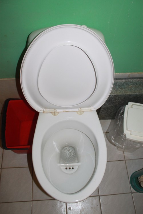 Do med kildesortering. Urinen brukes til gjødsel. Doen er laget av Porsgrund Porselen.