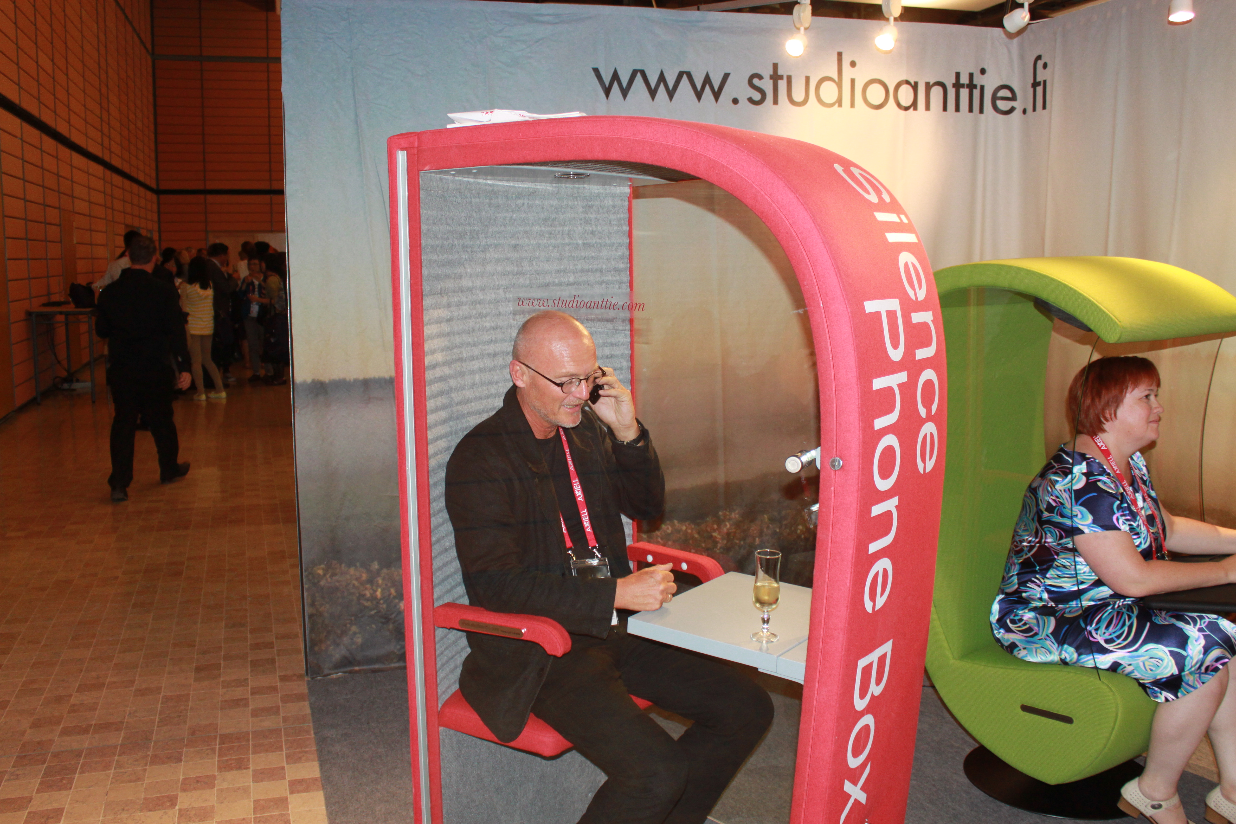 Søndag ettermiddag var det åpning av utstillingene. Et enormt område med stands fra leverandører til bibliotekene. Her ser man hva trendene er. Flere firmaer leverer effektive systemer for scanning av bøker, et firma viste fram en mobil støvtørkemaskin for bøker. Flere viste fram små lydisolerte sitteplasser for lesing eller for å snakke i telefon.