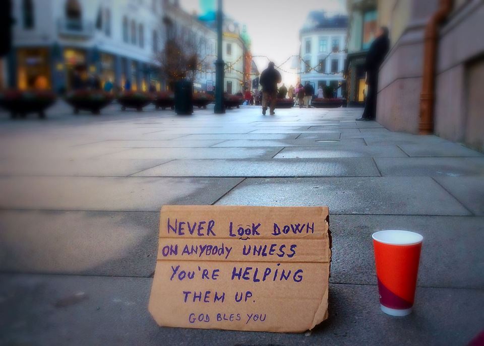 Vi kan ikke påby FrPere i regjeringsapparatet å vise medfølelse. Men det er noe helt annet når de også vil forby andre å hjelpe medmennesker i nød. Hva slags menneskesyn er dette uttrykk for? Det eneste man kan oppnå er å rydde gatene slik at vi slipper å se tiggerne. Hva blir det neste? Forbud mot fattige eller narkomane å vise seg offentlig i dagslys? Påbud om gule stjerner på klærne?