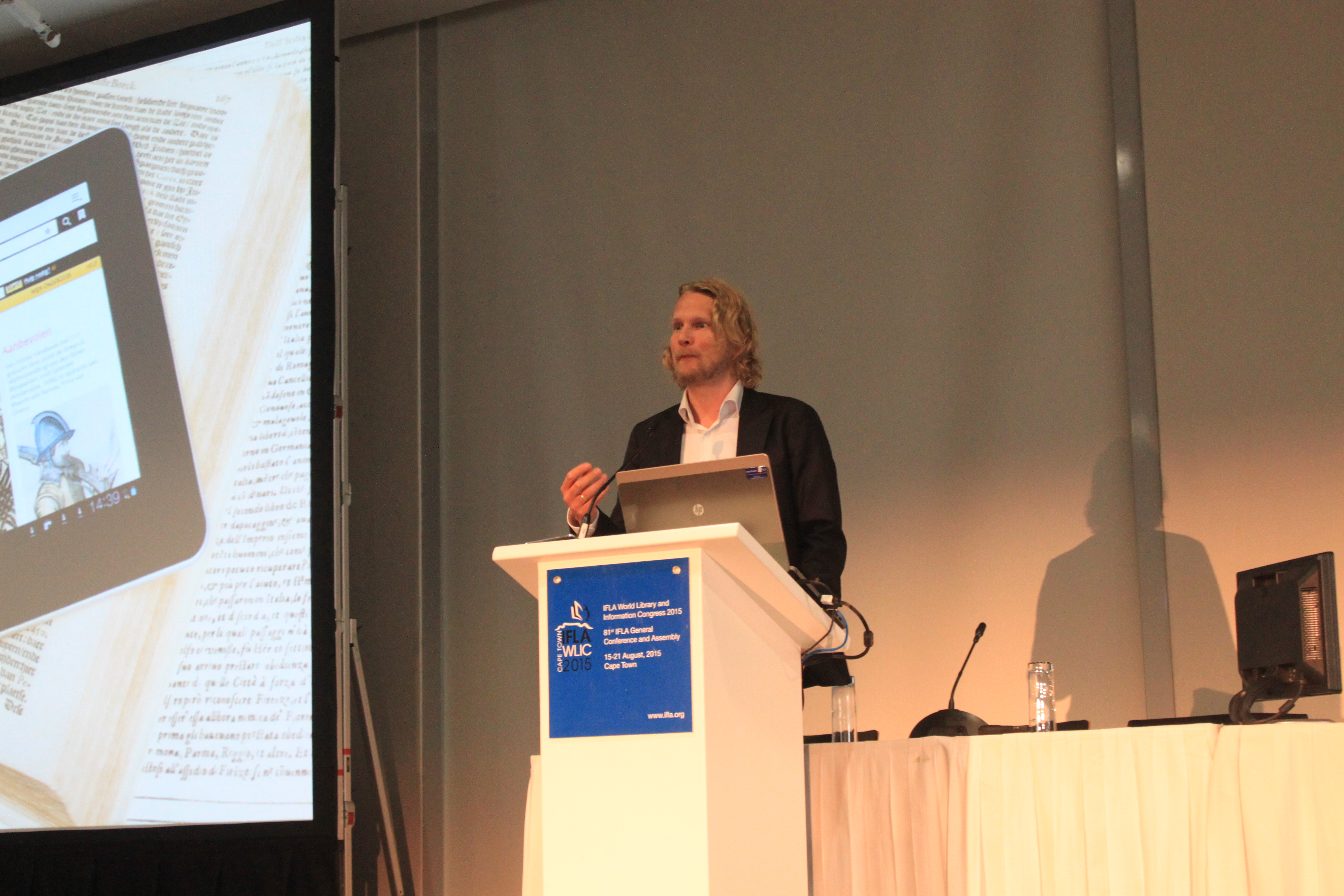 Ved siden av Myhre var det presentasjoner fra Canada, Nederland og Sør-Afrika. Mye er forskjellig, men mye er også sannelig likt. På kulturkvelden på tirsdag satt jeg for øvrig ved bordet sammen med den sveitsiske nasjonalbibliotekaren som ledet dagens sesjon. Han var bekymret over at han ikke trodde han klarte å uttale etternavnet til den norske nasjonalbibliotekaren. – Men det gjør kanskje ikke noe, sa han, for han er visst så ukonvensjonell at fornavn rekker? Det gjorde det.