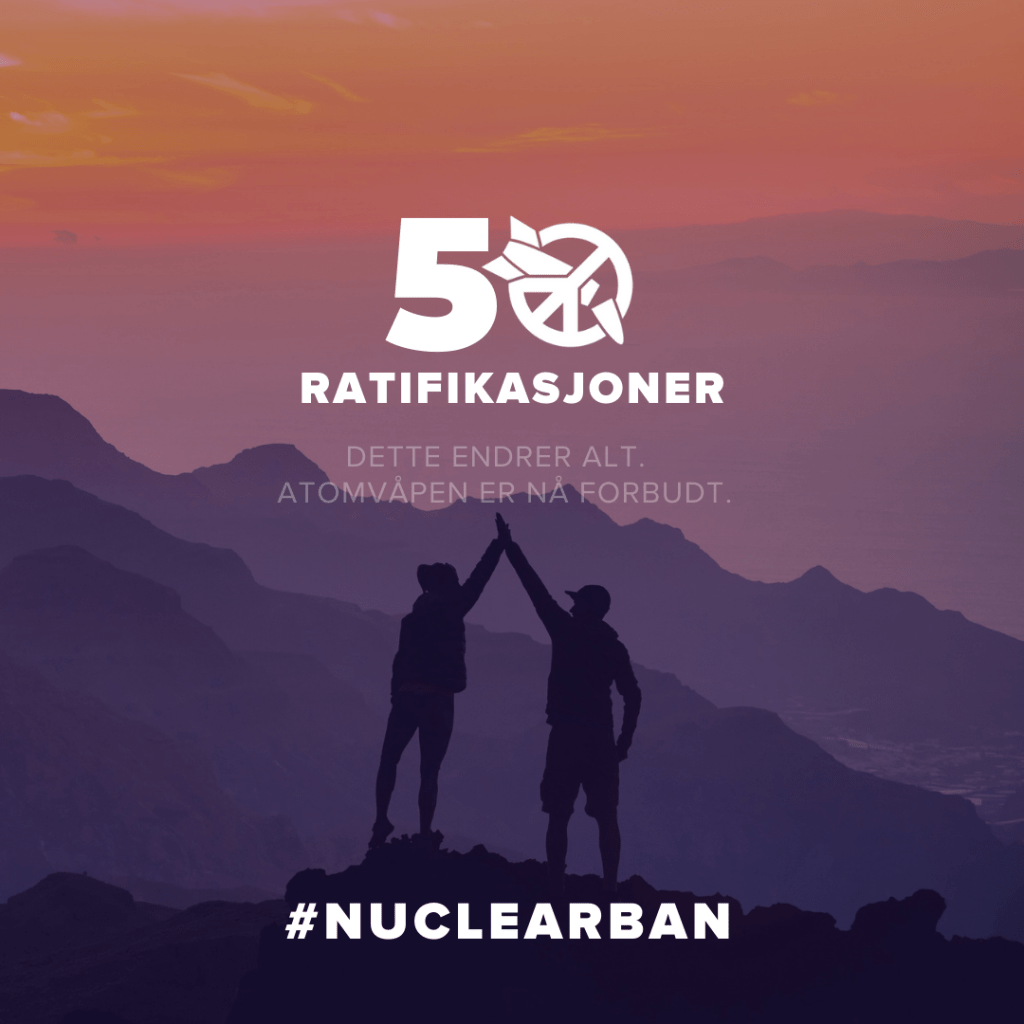 På dagen 75 år siden FN ble opprettet, kom nyheten om den 50. ratifikasjonen av avtalen om forbud av atomvåpen. Det betyr at atomvåpenforbudet blir forbudt etter internasjonal folkerett. Det er grunn til å feire!
