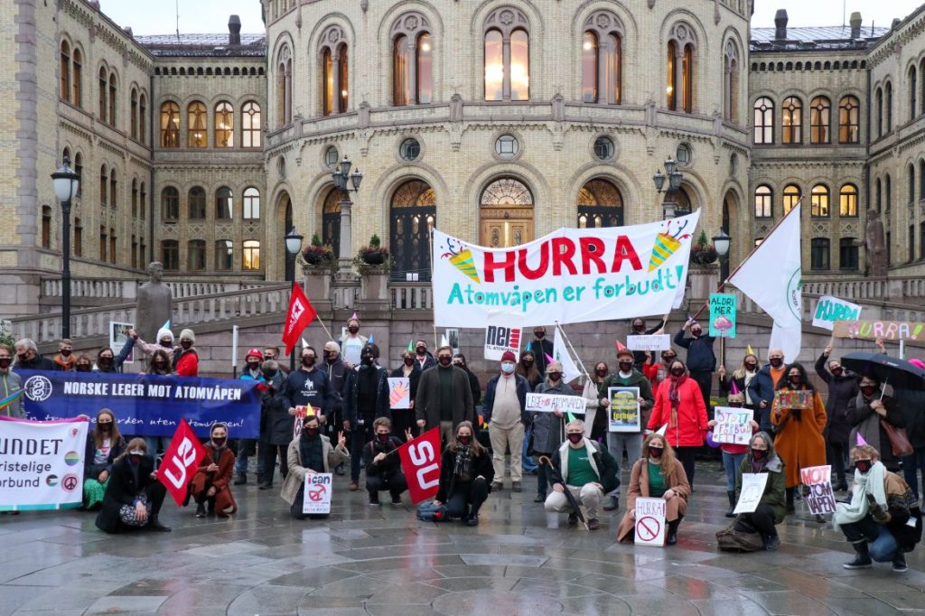 Vi vet at blant er massiv støtte blant velgerne til at Norge skal slutte seg til atomvåpenforbudet som trådte i kraft internasjonalt 22. januar i år.. Problemet er at dette ikke gir seg utslag i regjeringen og på Stortinget.