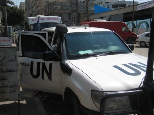 Vi ble plukket opp av en FN-bil klokka 8, og vi satte kursen mot Gaza som vi skulle komme inn i via grensestasjonen Erez. Kryssinga gikk uten problemer. Vi måtte gå to kilometer, og vi var bekymret hvordan vi skulle få koffertene gjennom den trange jern-svingdøra. Aslak gikk gjennom først, og så skjøv vi hver koffert igjennom svingdøra før Miriam og jeg fulgte etter. På Gaza-sida ble vi hentet av en ansatt fra Unesco-kontoret i Gaza. Han kom med en pansret FN-bil. En kilometer fra grensestasjonen hadde Hamas en egen grensepost, men vi kom gjennom også den uten problemer. I UNDP-hovedkvarter i Gaza møtte vi Mohammed som er leder av Unesco-kontoret. Han orienterte os om situasjonen i Gaza og hvilke sikkerhetshensyn vi må ta her nede. Siden vi er kommet inn som FN-personell er det en del ting vi ikke kan gjøre, som andre utlendinger i prinsippet kan gjøre, slik som å gå på stranda eller bevege oss langt fra hotellet uten FN-bil.