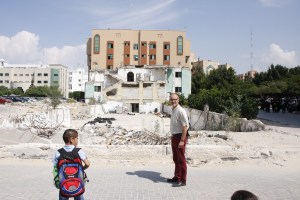 Jeg står foran det som var en bygning med laboratorier før Israels angrep i 2009