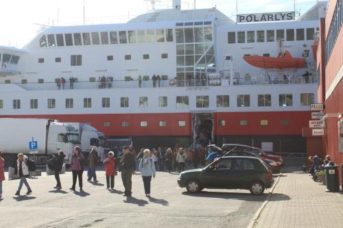 Vi stansa opp i Honningsvær og fikk enda et møte med Hurtigruta som vi har møtt både i Bodø, Sortland og Tromsø. Denne gangen var det hurtigruteskipet Polarlys som stanser i tre timer i Honningsvåg for at turistene skal kunne fraktes med busser til Nordkapp.